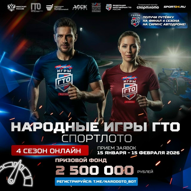 С 15 января стартует приём заявок на 4-й сезон онлайн соревнований по многоборью ГТО «Народные Игры ГТО Спортлото» 2026.