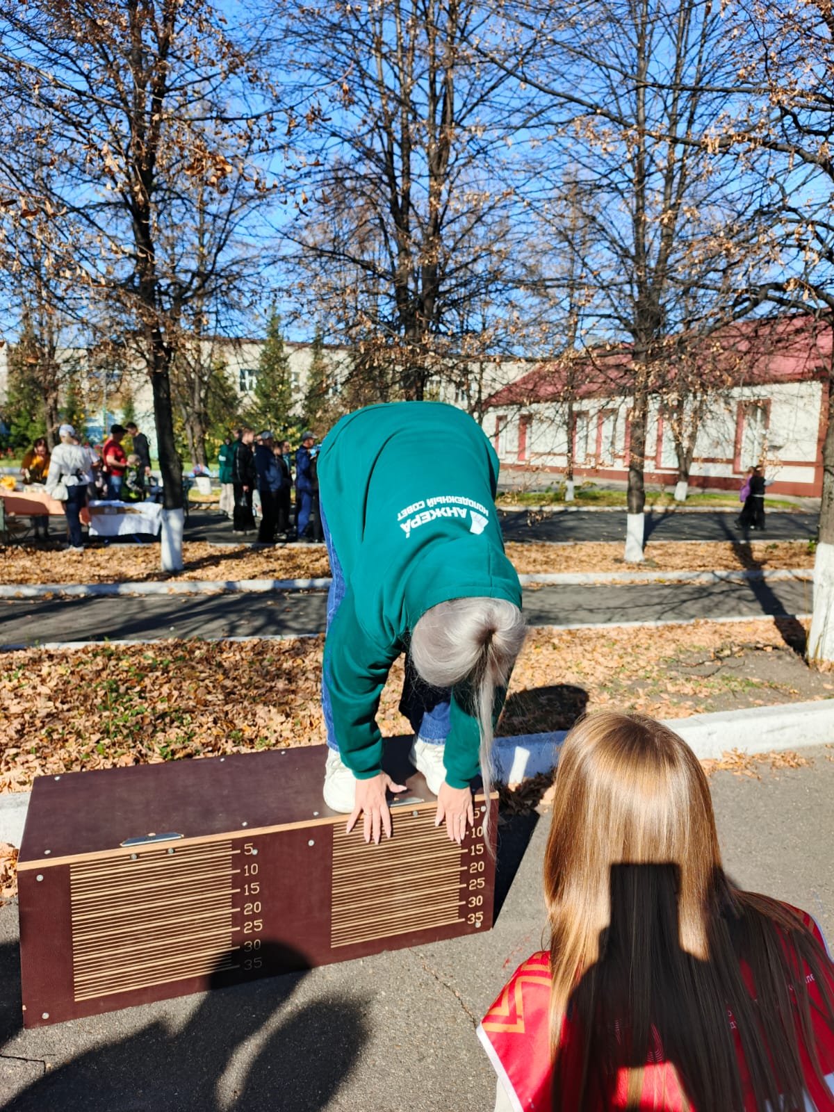 Наклон на гибкость — проверял растяжку и подвижность суставов участников.